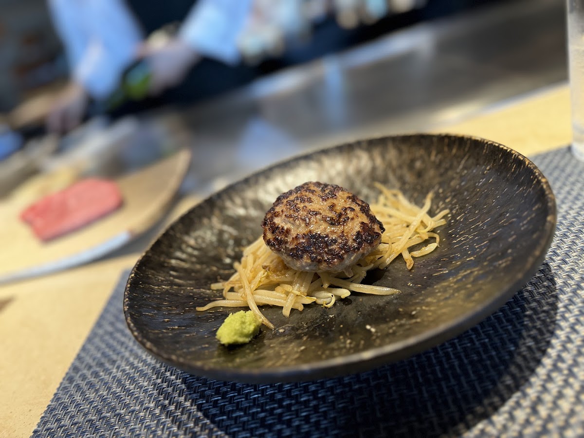 For those seeking variety, the 沙拉 (salad) at New Matsuzaka Nanbamidosujiten is a delightful mix of fresh ingredients, perfectly balancing the heavy and rich dishes with its light, crisp textures. Another standout is the 黒毛和牛100 ハンバーグ (100% Black Wagyu Beef Hamburger), which delivers a savory and juicy bite that stands out from other burgers. If you're in the mood for seafood, the Teppanyaki Lobster Tail is a top choice. Grilled to perfection, the lobster is succulent and infused with a delicious smokiness that highlights the expert grilling techniques of the chefs.